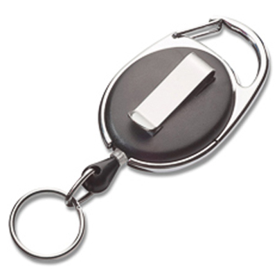 - JoJo oval schwarz, mit Drahtseil, Gurtclip & Karabiner, Schlüsselring 20 mm
