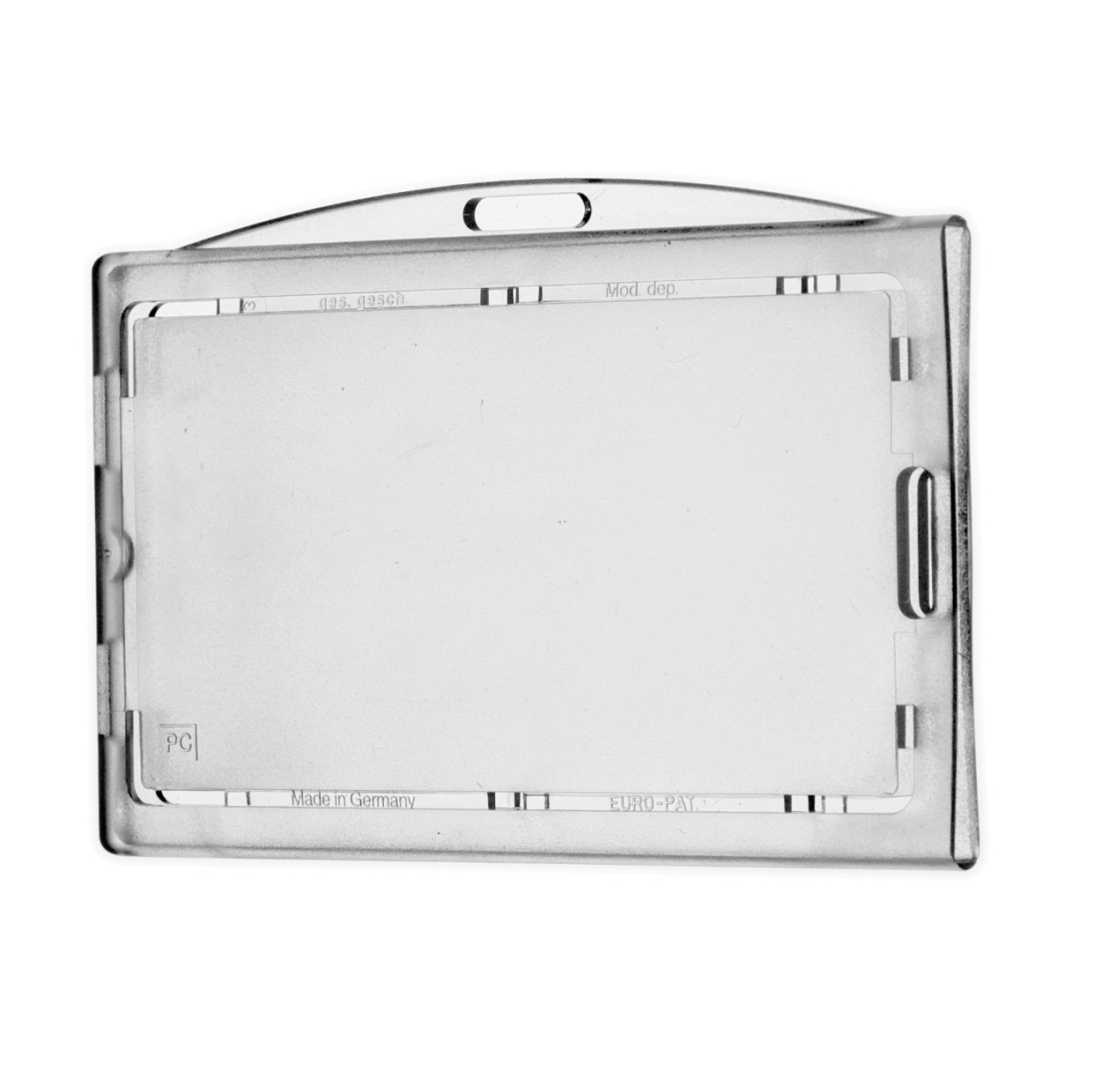 Der Sicherheitskartenhalter mit Verschlussteil kann mehrfach geöffnet und verschlossen werden. Er bietet Platz für bis zu zwei ISO-Karten (max. 2 mm Dicke).