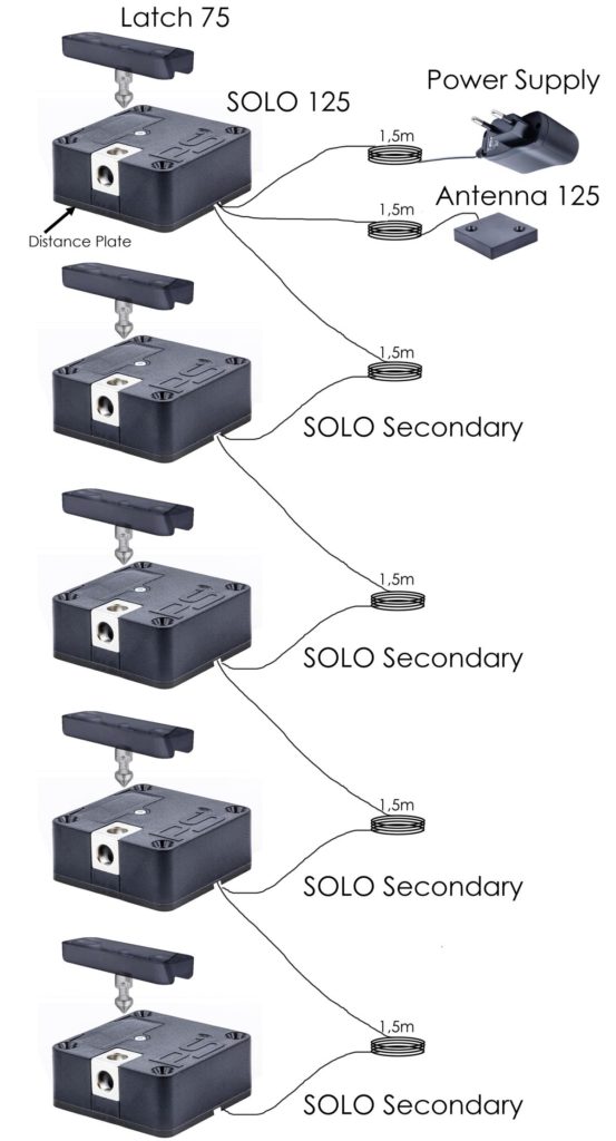 - VSappnungsversorgung von bis zu 5 Slave-Schlösser