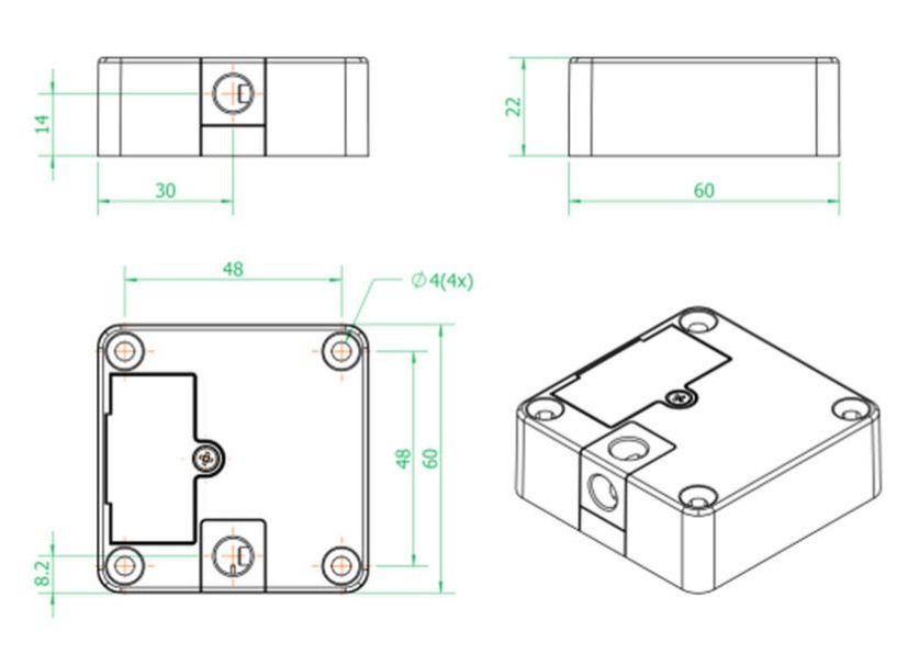 - Masse: 60 x 60 x 22 mm / Lochabstand: 48 mm